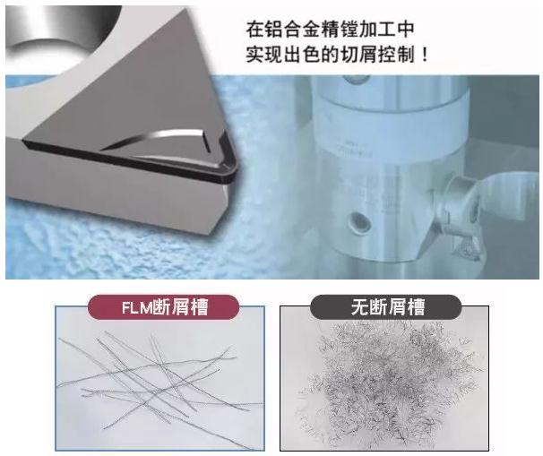 精鏜用帶有斷屑槽的金剛石刀片不同于切削余量較大的車削加工,該品是完全針對精鏜加工較小余量而開發。用于解決鋁合金加工不斷屑的難題。