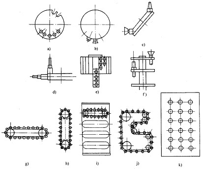 圖5.4 刀庫  a b c d e f )盤式刀庫  g h I j) 鏈式刀庫  k)格子式刀庫