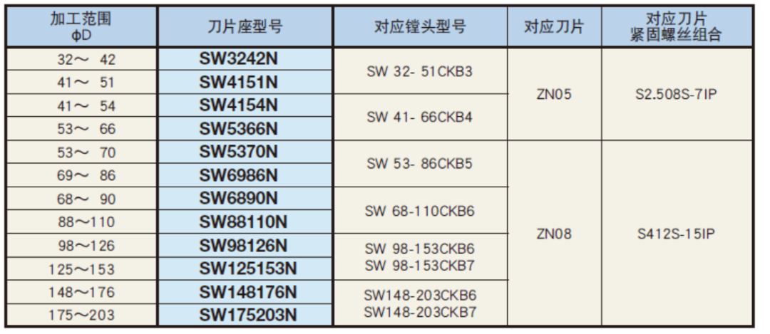 選用雙面六角刀片時需另選配對應新推出的N型刀片座,可對應加工范圍φ32mm-φ203mm。