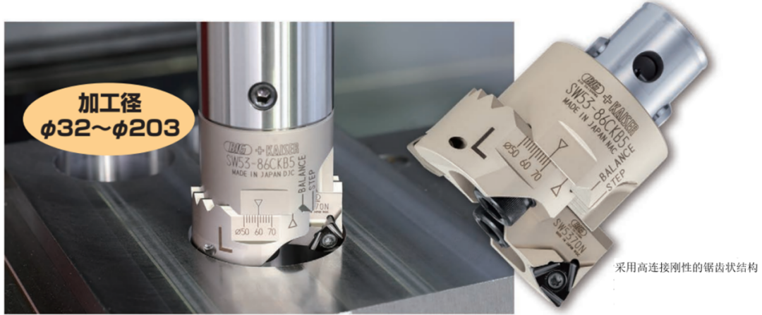 SW粗鏜頭和刀片座之間采用高剛性的齒狀連接結構,特別適合于大切深、高進給的高效率加工。