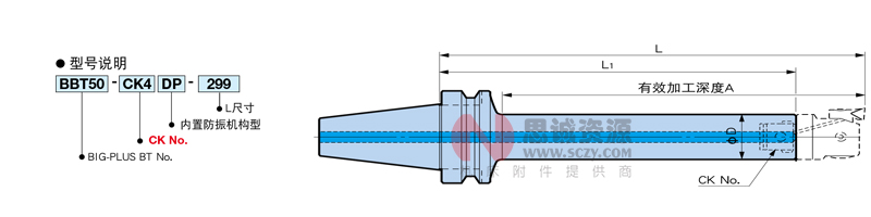 | BIG-PLUS BBT 基礎柄 型號 | CK No. | 加工范圍 | φD | φD1 | L | L1 | L2 | A | 重量(kg) |