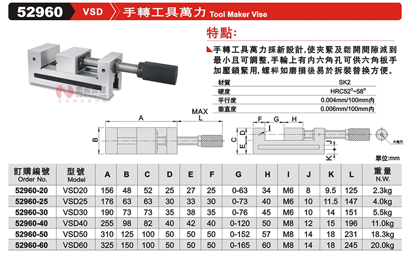 思誠資源為您提供:GIN精展手轉工具萬力52960/VSD的采購報價、GIN(精展)52960型號參數、規格圖片、PDF畫冊等資料,如您想了解更多關于GIN(精展)正品品牌的其他精密平口鉗資料與產品貨期庫存、行情價格,就在思誠資源MRO商城。