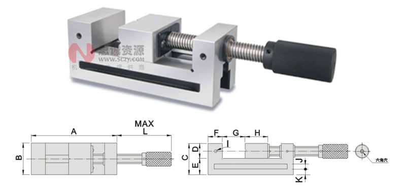手轉工具萬力采新設計,使夾緊及松開間隙減到最小且可調整,手輪上有內六角孔可供六角扳手加壓鎖緊用,螺桿如磨損后易于拆裝替換方便。