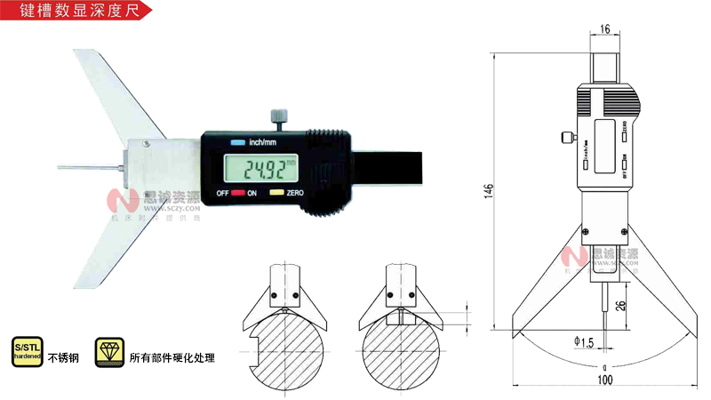 專用于測量各種軸上鍵槽深度,方便快捷;