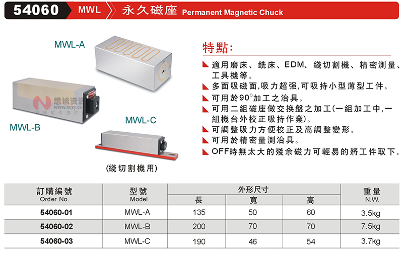 思誠資源為您提供:GIN精展永久磁座54060/MWL的采購報價、GIN(精展)54060型號參數、規格圖片、PDF畫冊等資料,如您想了解更多關于GIN(精展)正品品牌的其他電磁吸盤資料與產品貨期庫存、行情價格,就在思誠資源MRO商城。