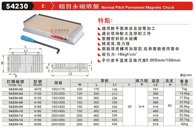思誠(chéng)資源為您提供:GIN精展粗目永磁吸盤(pán)54230/E的采購(gòu)報(bào)價(jià)、GIN(精展)54230型號(hào)參數(shù)、規(guī)格圖片、PDF畫(huà)冊(cè)等資料,如您想了解更多關(guān)于GIN(精展)正品品牌的其他電磁吸盤(pán)資料與產(chǎn)品貨期庫(kù)存、行情價(jià)格,就在思誠(chéng)資源MRO商城。
