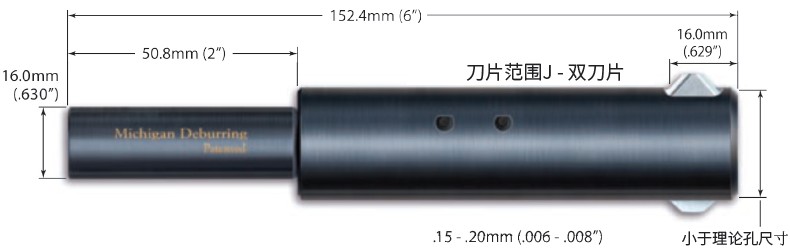 密歇根區(qū)域經(jīng)理 李經(jīng)理:18929218517咨詢用于大孔的自鎖式去毛刺工具,6.4至26.0mm(.253"至1.022"):