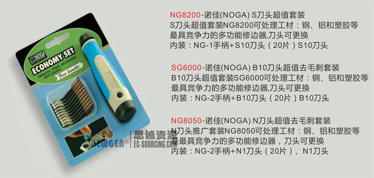 思誠資源為您提供:NG8050 諾佳(NOGA) N刀頭超值去毛刺工具套裝的采購報價、NOGA(諾佳)NG8050型號參數、規格圖片、PDF畫冊等資料,如您想了解更多關于NOGA(諾佳)正品品牌的其他修邊器資料與產品貨期庫存、行情價格,就在思誠資源MRO商城。