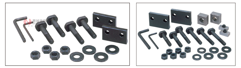 | 標準導位塊(2個1組) | 銼齒狀鉗口 | T型螺栓 | 六角螺母 | 墊片 | 固定塊 | 六角螺栓 | 內六角扳手 (夾緊用、鉗口用) | |