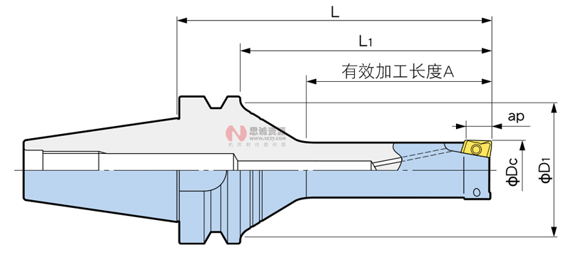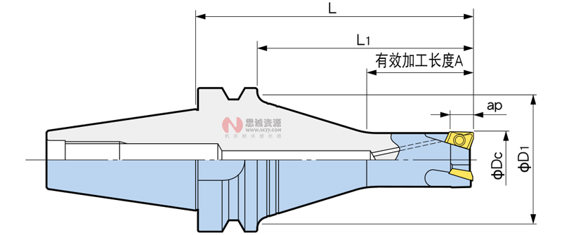 | 刀徑 φDc | 型 號 | 有效切削刃長 ap | φD1 | L | L1 | 有效加工長度 A | 刃數 | 對應刀片型號 | 質量 (kg) | |