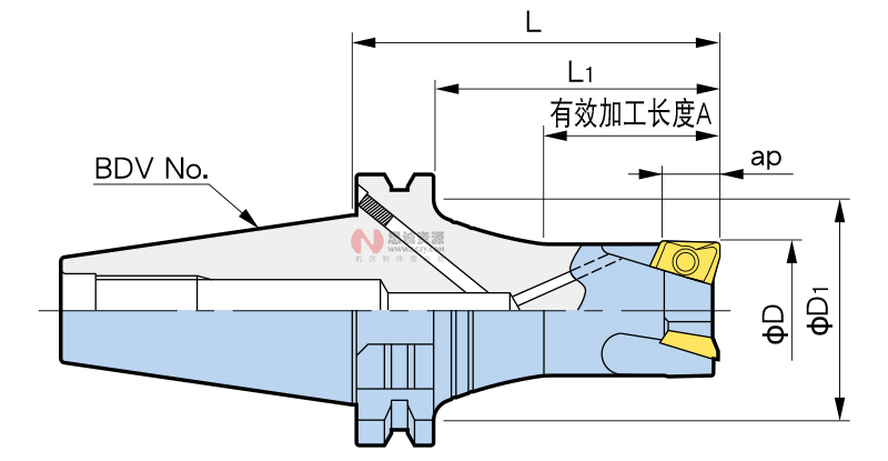 | 刀徑 φDc | 型 號 | 有效切削刃長 ap | φD1 | L | L1 | 有效加工長度 A | 刃數 | 對應刀片型號 | 質量 (kg) |