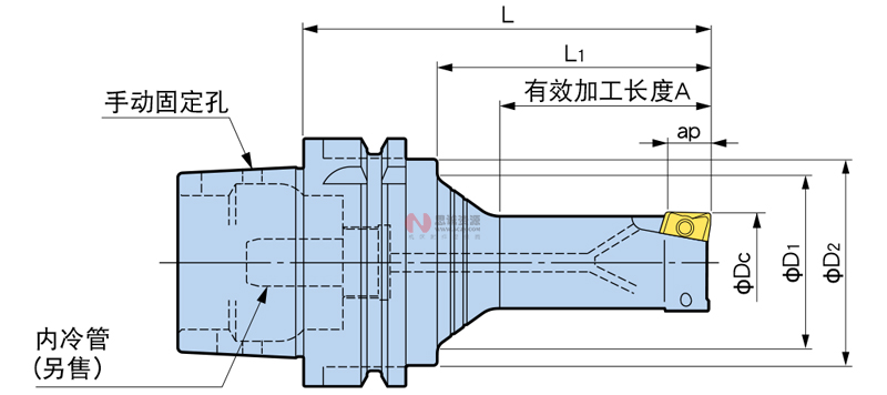 | 刀徑 φDc | 型號 | 有效切削刃長 ap | φD1 | φD2 | L | L1 | 有效加工長度 A | 刃數 | 對應刀片型號 | 質量 (kg) |