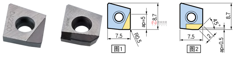 | 刀片型號 | 工件材料 | 圖 | 刀片材質 | 有效切削刃長 |