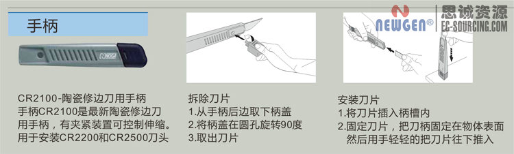 CR2000適用于塑料軟質材料的表面去飛邊 刀頭可更換 內裝:陶瓷刀手柄,250MM外弧面,陶瓷刀片