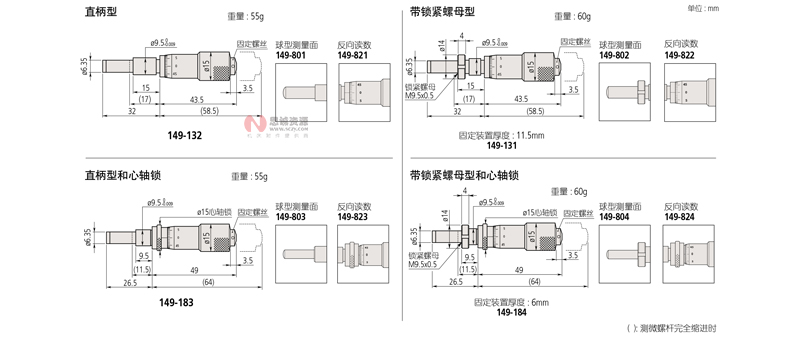 | 149-823** | 直柄型* | 普通型 (硬質(zhì)合金頭) | 反向讀數(shù) | |||