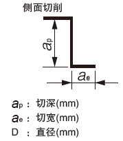 | 型號 | 直徑 (mm) | 轉速 (min-1) | 進給速度 (mm/min) | ap (mm) | ae (mm) |