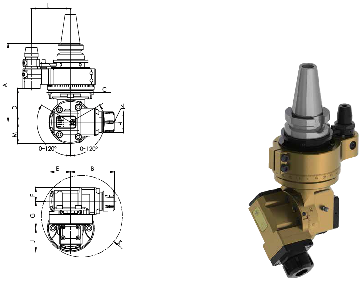 *0°~±120°加工角度多樣化,適用於各種加工應用。