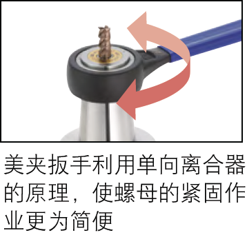 超精密設計美夾螺母,可發揮100%的夾套精度。帶滾珠軸承,不會向夾套施加扭力。