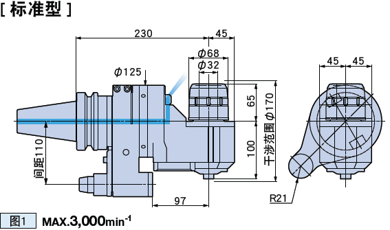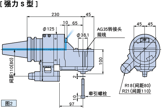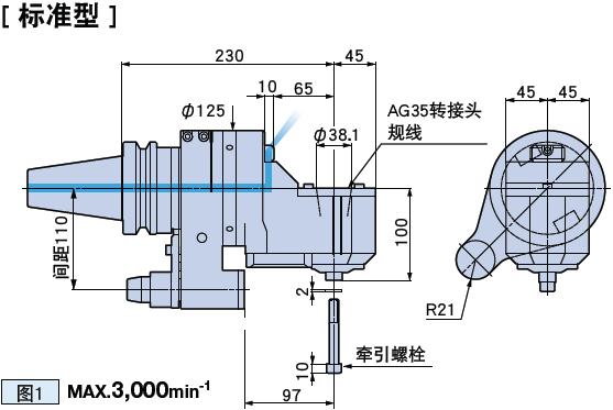 對應帶中心出水功能機床的中心內冷型角度頭。