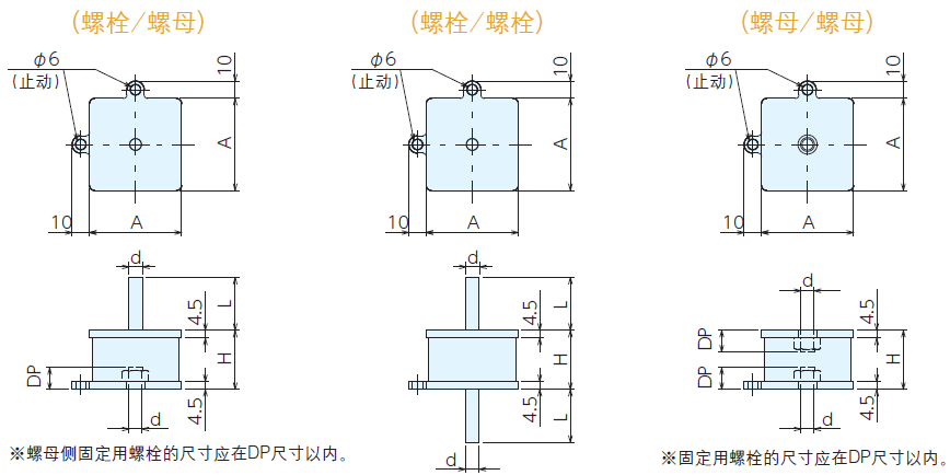 | A | H | d(粗牙) | L | DP | [Hz]※1 | [Hz]※2 | [mm]※3 | ||||||