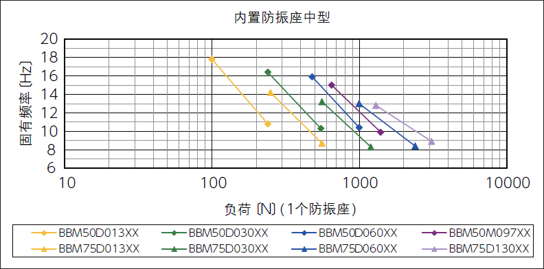 ■BBM75D013(裝載30N時的固有頻率約為13Hz)或BBM50D030(裝載300N時的固有頻率約為15Hz)適用上述情況。