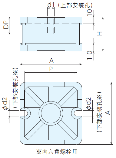 采用隔振及防振性能優異的聚氨酯泡沫塑料的內置用防振座,比橡膠類防振材料更優異的聚氨酯泡沫塑料,可消除低頻振動,各尺寸均備有2~5種防振材料。即使負荷不同,也可將尺寸差異控制在最小限度內