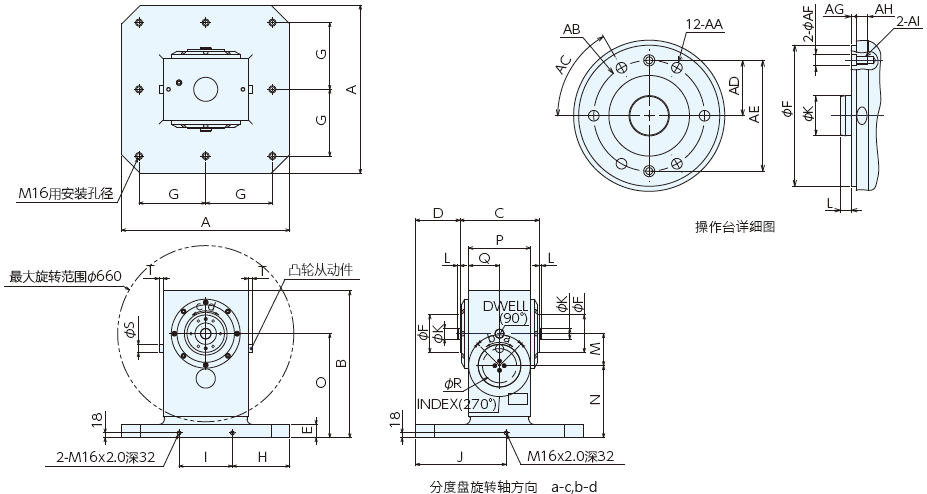 ●在機床主軸上安裝Morse錐形支架A型等?直接接觸凸輪從動件并在弧之間對輸入主軸施加旋轉