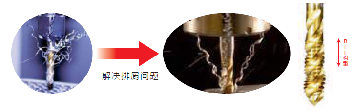 BLF(螺旋部特殊構型)+獨創的溝型 大幅改善排屑性