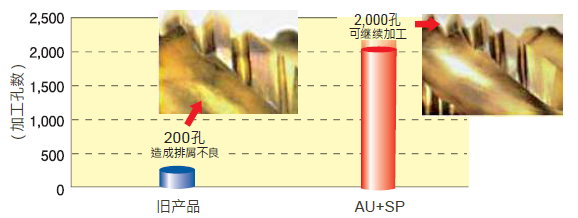 *AU+SP的螺紋部的完全牙只留數牙,后面的牙山全部切除一半的特殊構型設計