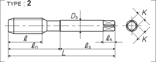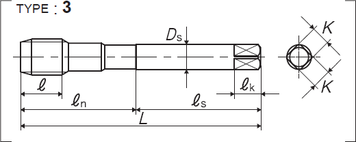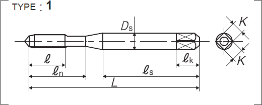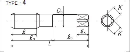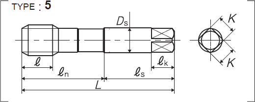 | 全長 | 吃入部+完全螺紋部的長度 | 螺紋部長 | 頸下長 | 柄部長 | 柄徑 | 四角部寬 | 四角部長 |