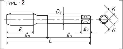 | 全長 | 吃入部+完全螺紋部的長度 | 螺紋部長 | 頸下長 | 柄部長 | 柄徑 | 四角部寬 | 四角部長 |