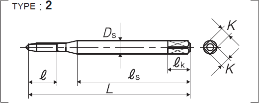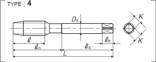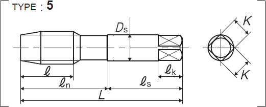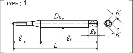 | 全長 | 螺紋部長 | 頸下長 | 柄部長 | 柄徑 | 四角部寬 | 四角部長 |