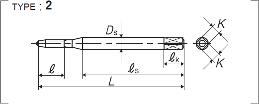| 全長 | 螺紋部長 | 頸下長 | 柄部長 | 柄徑 | 四角部寬 | 四角部長 |