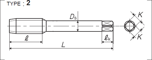| 全長 | 螺紋部長 | 頸下長 | 柄部長 | 柄徑 | 四角部寬 | 四角部長 |