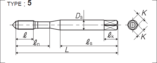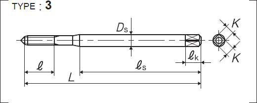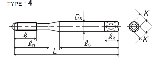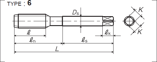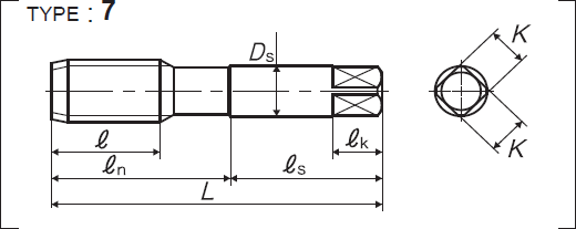 | 全長 | 螺紋部長 | 頸下長 | 柄部長 | 柄徑 | 四角部寬 | 四角部長 |