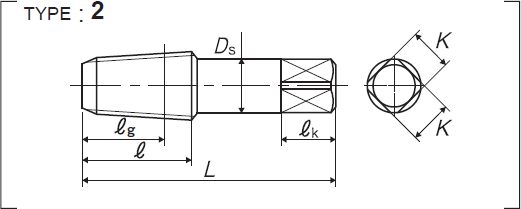 | 全長 | 螺紋部長 | 基準徑的位置 | 柄徑 | 四角部寬 | 四角部長 |