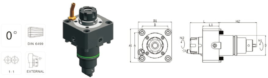 | 產(chǎn)品編號 | 適配刀塔標(biāo)準(zhǔn) | D | ER | H2 | L | L1 | A | B | A1 | B1 | rpm/min |