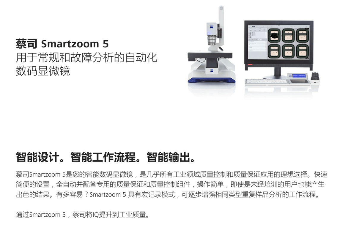 思誠資源為您提供:ZEISS蔡司 Smartzoom 5 自動化數碼顯微鏡的采購報價、ZEISS(蔡司)Smartzoom 5型號參數、規格圖片、PDF畫冊等資料,如您想了解更多關于ZEISS(蔡司)正品品牌的其他顯微鏡資料與產品貨期庫存、行情價格,就在思誠資源MRO商城。
