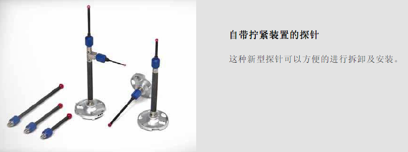 為了測量一個工件的所有特性,經常會用到幾組探針。在整個測量工程中,三坐標測量機可以自動更換探針,這需要更多的吸盤作為附加探針組的基礎。