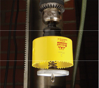 ?將支持柄連接到與現(xiàn)有孔尺寸相同且與所需孔尺寸相同的開孔鋸上。