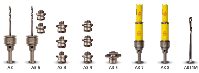 | A3-4 | 三個(gè)ULTI-MATE開孔鋸轉(zhuǎn)接器,適用于32皿- 102nm/l. 1/4” - 4”的開孔鋸 |