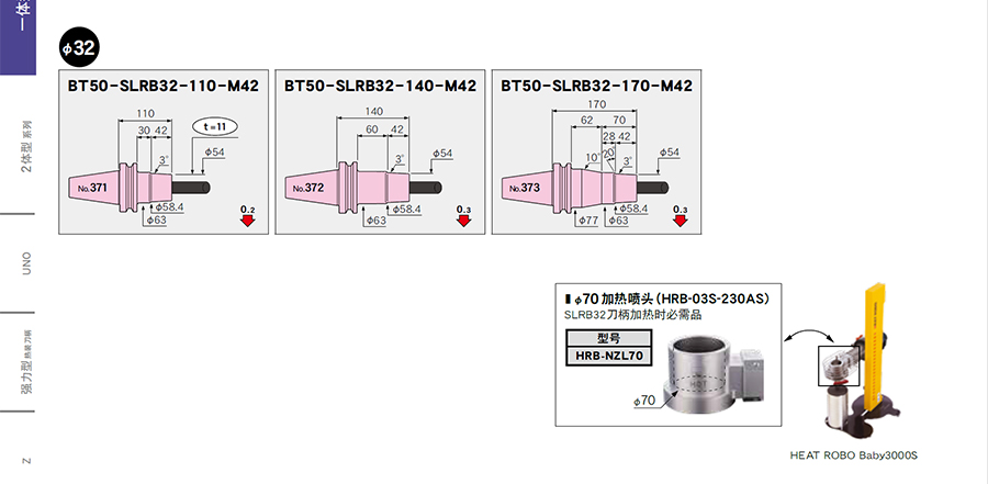 | BT50-SLRB32-170-M42 | 一體式熱裝刀柄 | BT50 | 32 | 11 | 170 | 42 | 5.8 | 加購詢價 |