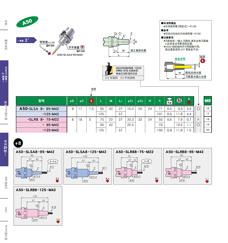 | A50-SLSA8-95-M42 | 一體式熱裝刀柄 | A50 | 8 | 1.5 | 95 | 42 | 0.5 | 加購詢價(jià) |