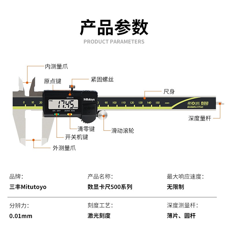 思誠資源為您提供:Mitutoyo三豐 500系列 電子數顯卡尺的采購報價、Mitutoyo(三豐)500系列型號參數、規格圖片、PDF畫冊等資料,如您想了解更多關于Mitutoyo(三豐)正品品牌的其他卡尺資料與產品貨期庫存、行情價格,就在思誠資源MRO商城。