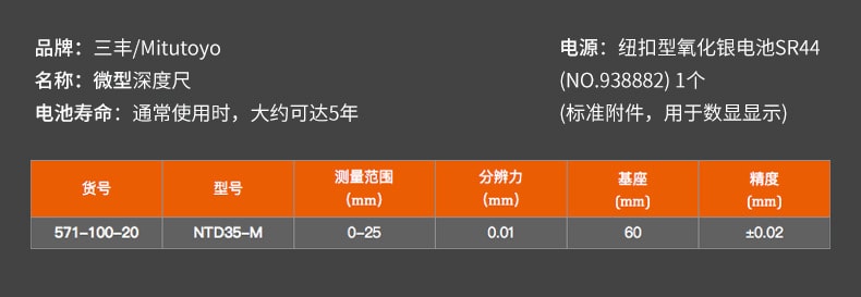 思誠(chéng)資源為您提供:Mitutoyo三豐 571系列 NTD35-M 微型數(shù)顯深度卡尺的采購(gòu)報(bào)價(jià)、Mitutoyo(三豐)571系列型號(hào)參數(shù)、規(guī)格圖片、PDF畫冊(cè)等資料,如您想了解更多關(guān)于Mitutoyo(三豐)正品品牌的其他卡尺資料與產(chǎn)品貨期庫(kù)存、行情價(jià)格,就在思誠(chéng)資源MRO商城。