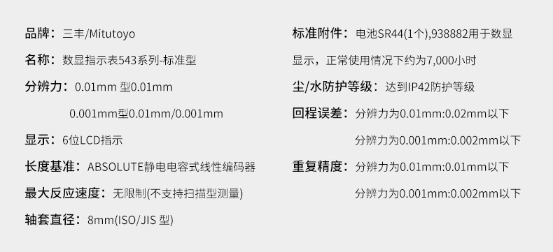 思誠資源為您提供:Mitutoyo三豐 543-390B系列 電子數(shù)顯千分表指示表的采購報價、Mitutoyo(三豐)543-390B型號參數(shù)、規(guī)格圖片、PDF畫冊等資料,如您想了解更多關于Mitutoyo(三豐)正品品牌的其他千分表資料與產(chǎn)品貨期庫存、行情價格,就在思誠資源MRO商城。