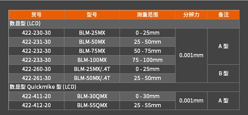 | 422-230-30(0-25MM) | 0.003 | 1 | 硬質合金測量面 | 0-25 | 1000 | 加購詢價 |
