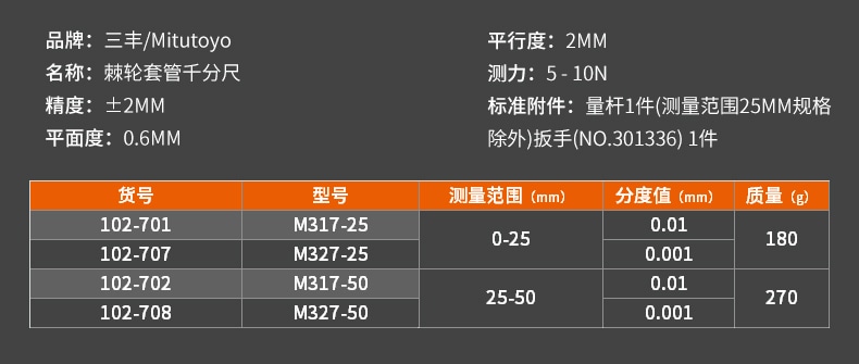 | 102-702/25-50*0.01mm | 0.02 | 硬質(zhì)合金測(cè)量面 | 10 | 25-50 | 咨詢客服 | 0.35kg | 加購(gòu)詢價(jià) |