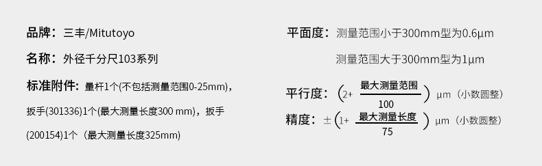 | 103-147-10/250-275mm/0.01mm | 0.005 | 250-300 | 0.01 | 加購詢價 |