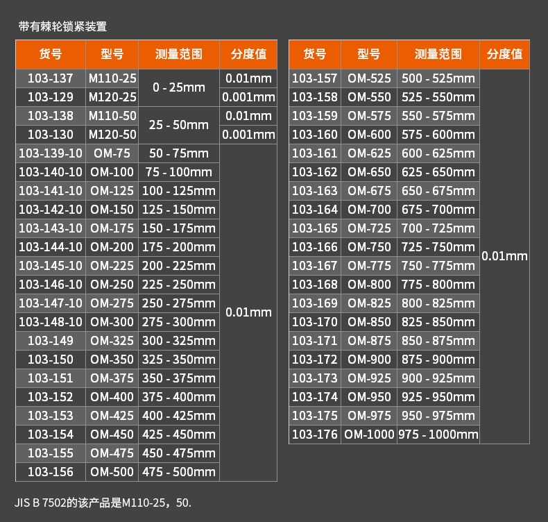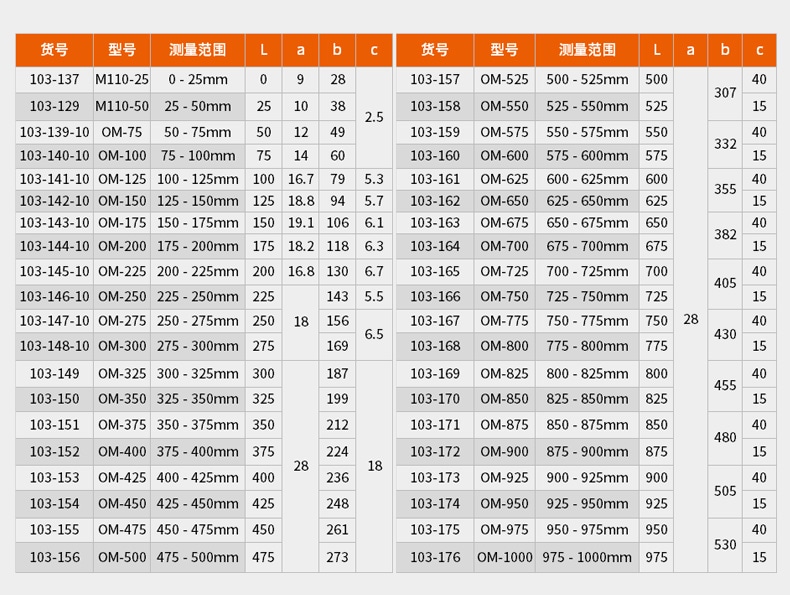 | 103-141-10/100-125mm/0.01mm | 0.003 | 100-125 | 0.01 | 加購詢價 |